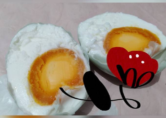 Menurut sukendra (1976), untuk menghasilkan telur asin yang memiliki karakteristik disukai diperlukan waktu 12 hari pengasinan. 1 buah jeruk nipis, ambil airnya. 2 butir telur asin rebus. Campur jadi satu bahan baluran kering, aduk rata. Telur dimasuk berperingkat peringkat bagi memastikan telur tidak masin secara serentak.